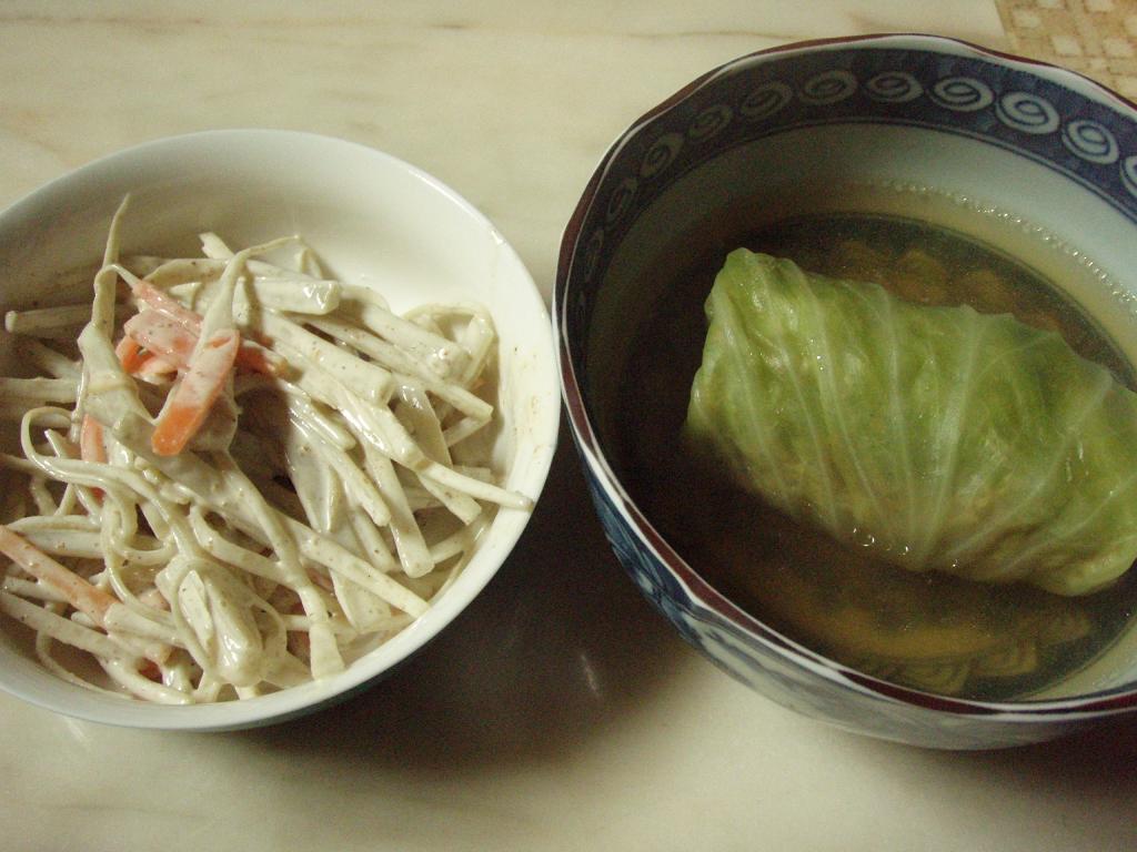 今日の献立は、ごぼうサラダとロールキャベツ