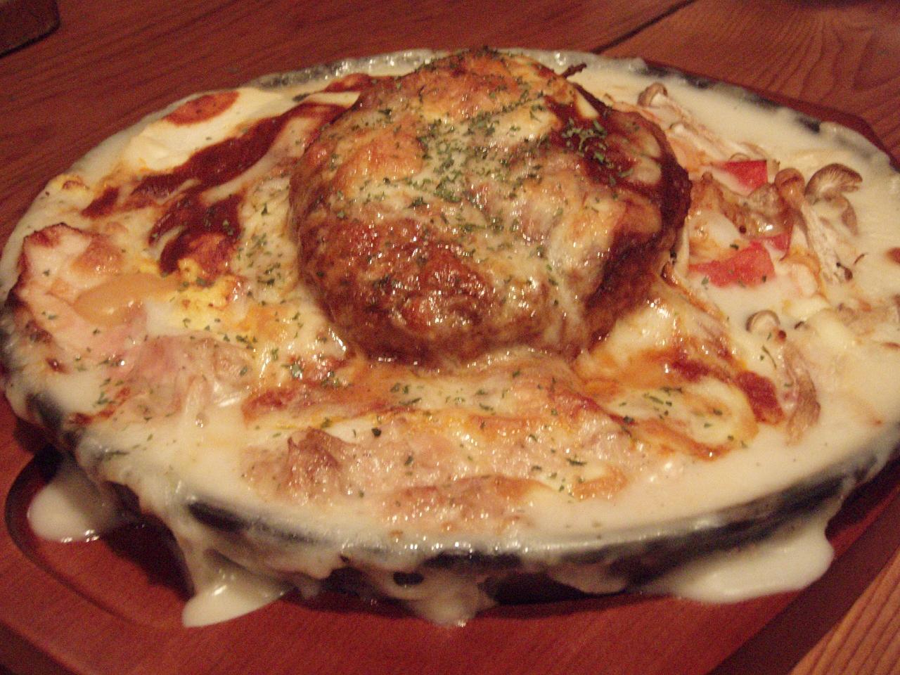MIXドリアにハンバーグのせを注文。今日はいつもより量が多い感じ