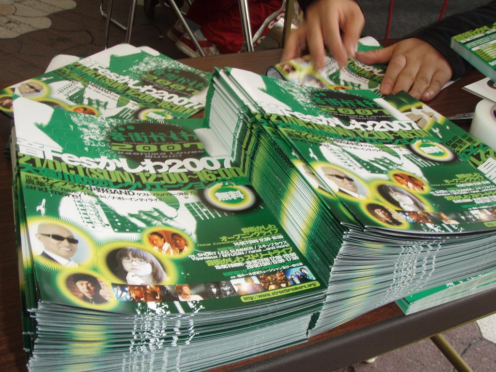 パンフの折込作業。