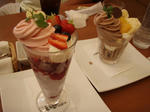 右:ベリーパフェ(母注文)&左:チョコレートパフェ(希菜注文)