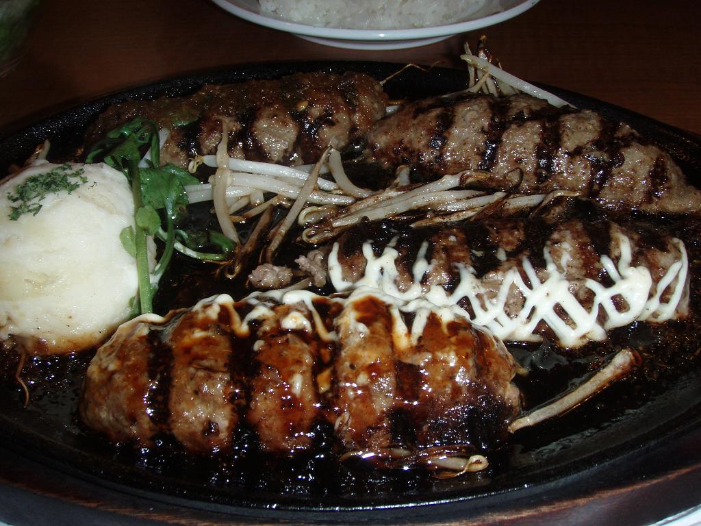 鉄板の上でジュージュー音を鳴らしているハンバーグに、コースについてきたデザートもボリューム満点!