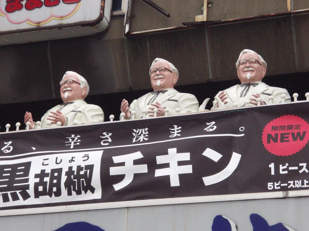 カーネルおじさんが3人も飾ってあるのは珍しいみたいで、外国人の人とか写真撮ってた。