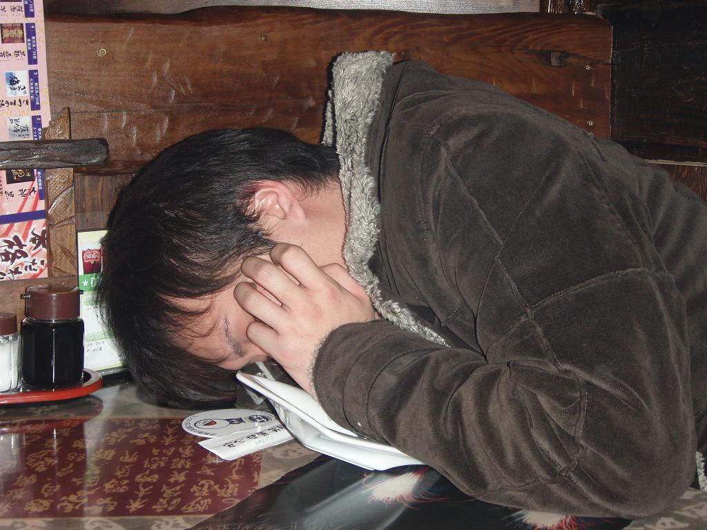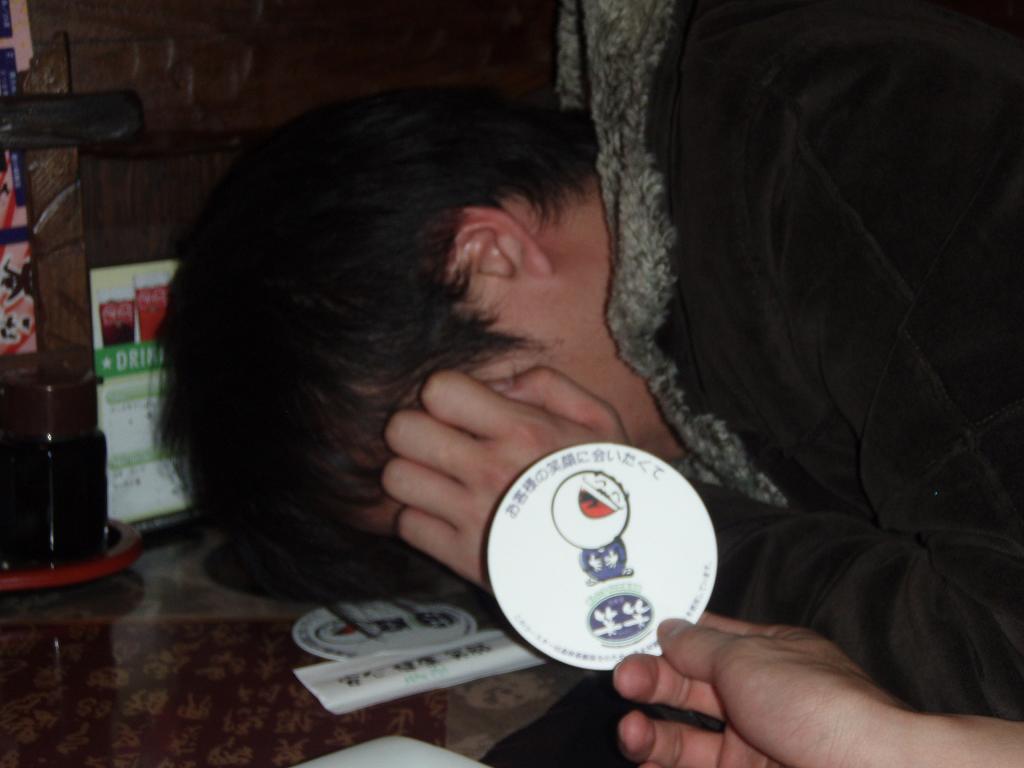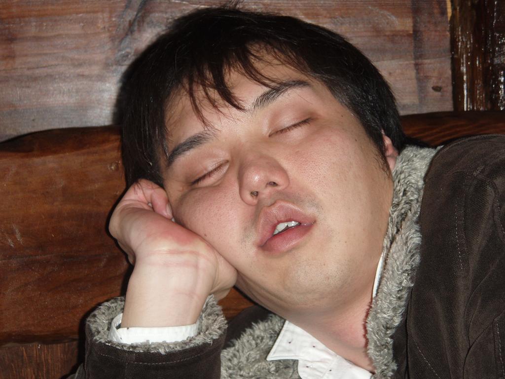 二次会場所に着くや、即行で寝るマッスル
