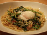 ホウレン草と半熟卵のミートソース