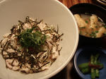 ・梅干、シソ、高菜、鶏肉の笹身、しらす、刻み海苔、ゴマの混ぜご飯