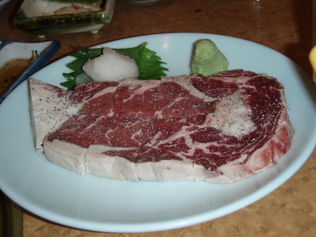 厚切り牛ステーキ。もちろん脂身も完食! 濃厚スープのテグタンは美味~♪